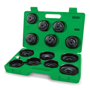– TOPTUL cup-type oil filter wrenches are made of gauge construction and are able to withstand up to 85 ft-lbs of torque applied. The cup-design grip functions as a socket minimizing the possibility of crushing filters and fits both 3/8″ and 1/2″ (adapter) square drive tool. The cups are coated with electro-black oxide finish for long life protection against rust